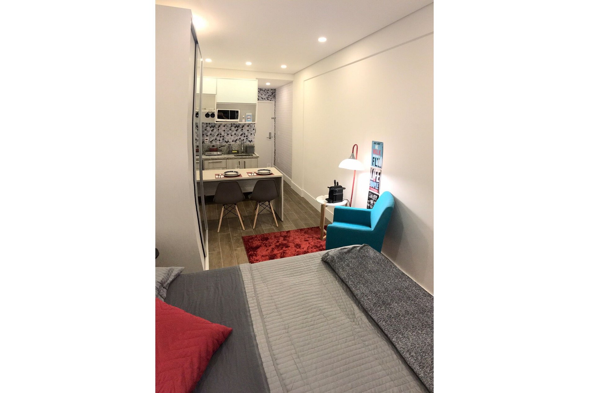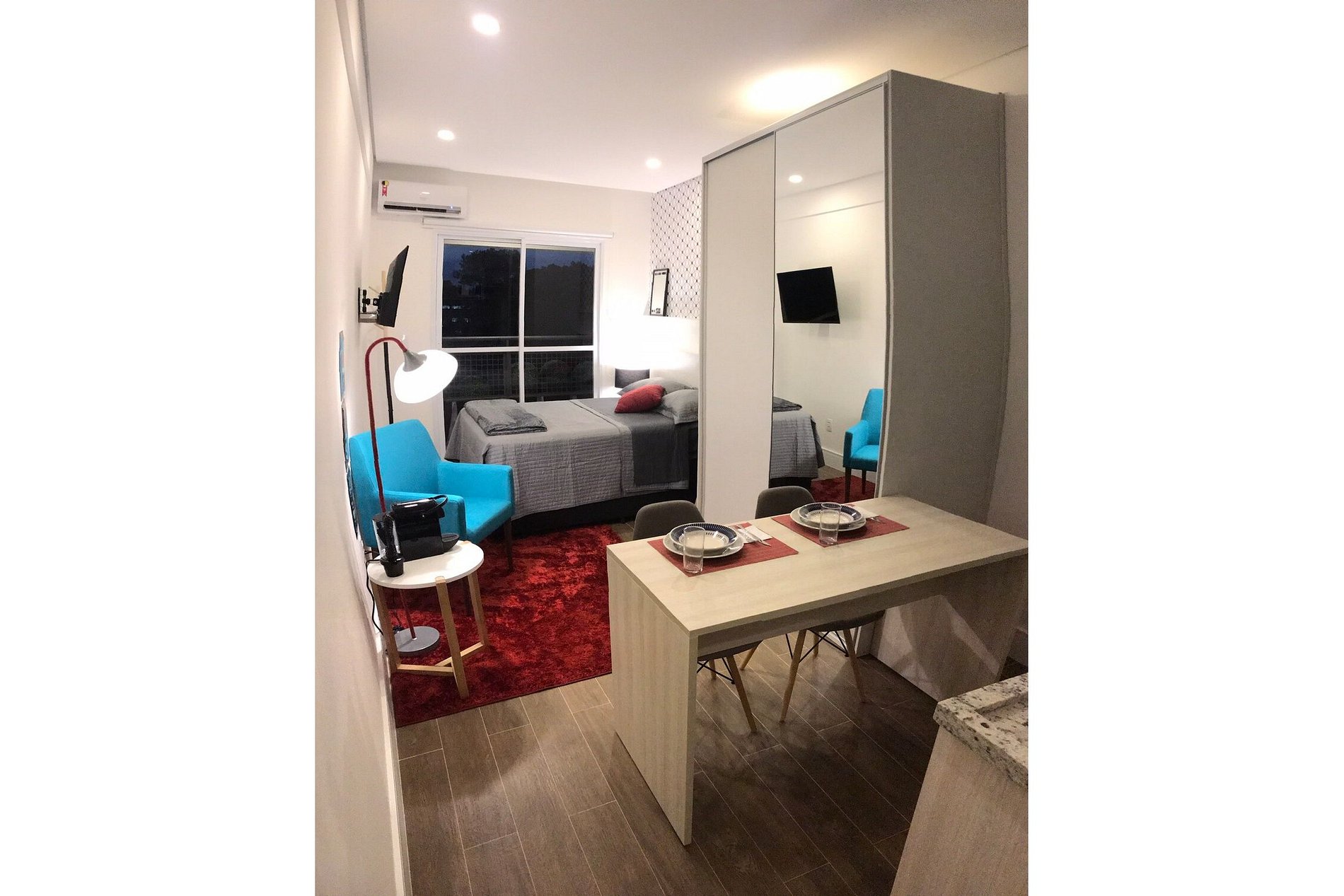 A 4 minutos (1,2km) de distância da Padaria Dona Deola e Shopping Mall Open Square. Cercado de restaurantes e pequenos centro comerciais. Flat Studio, unidade 502