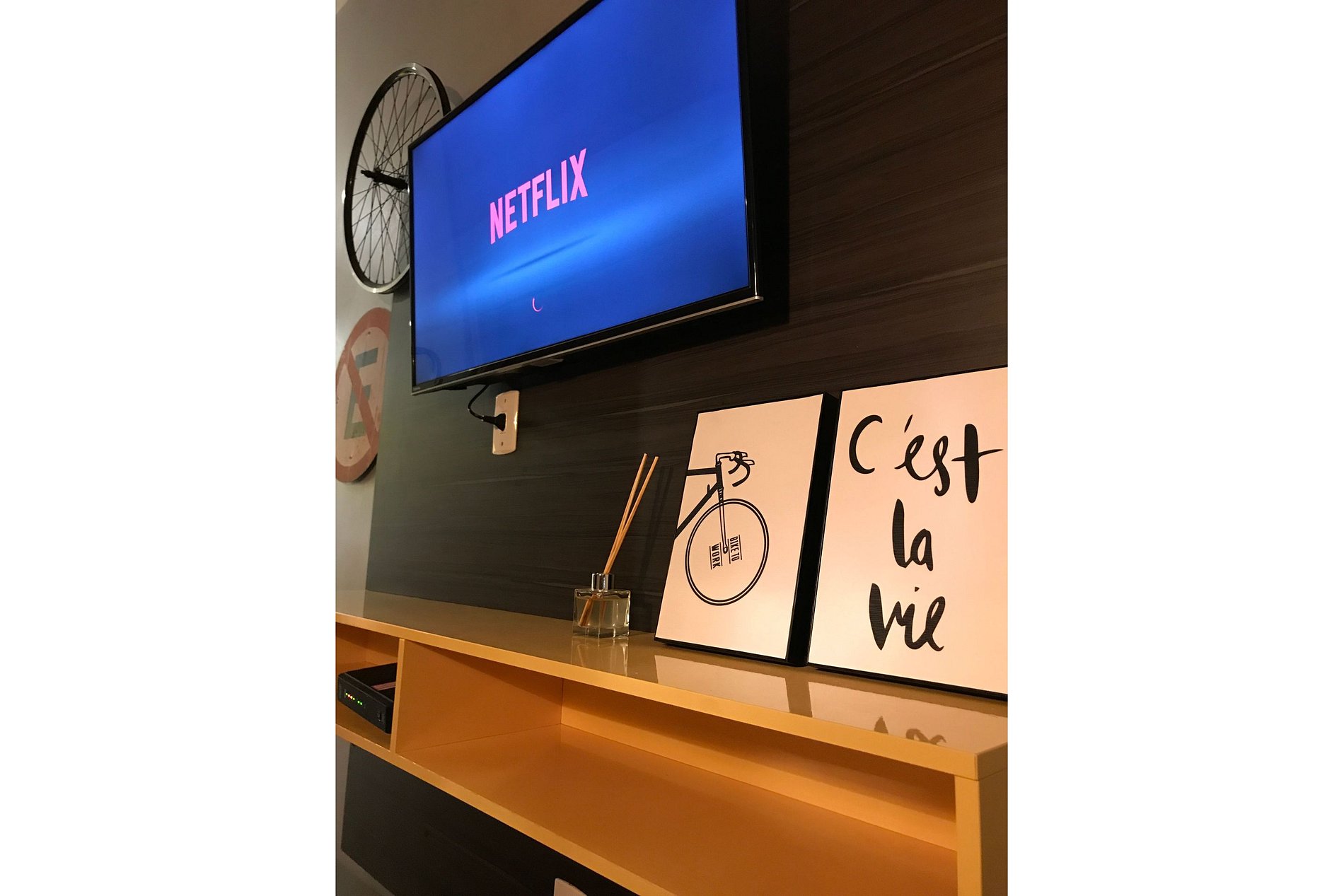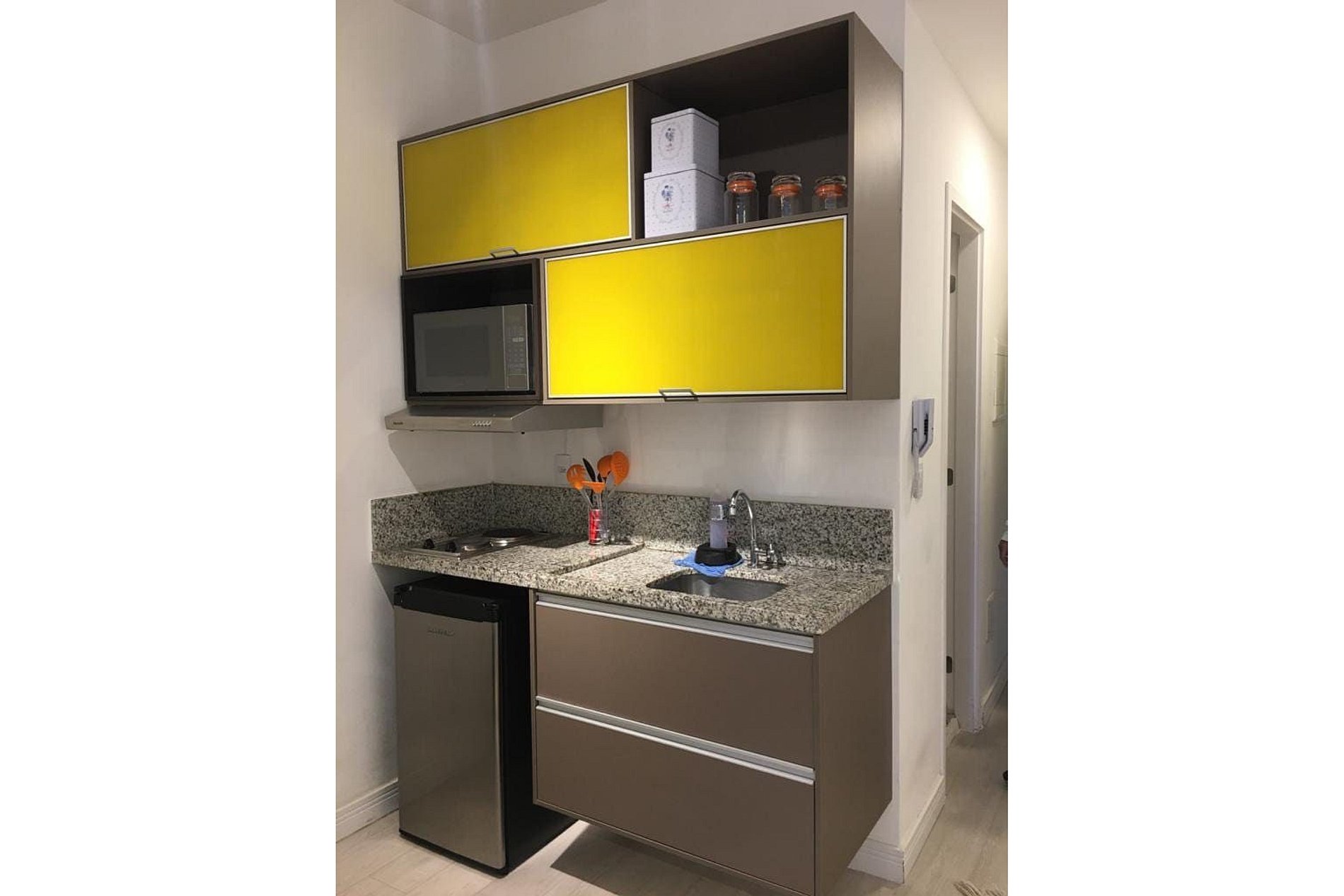 Ar condicionado, Wi-Fi, TV Smart Netflix. Flat completo com ar condicionado, cama box casal, roupa de cama, toalhas e todos utensílios de cozinha inclusive frigobar, cooktop e microondas.