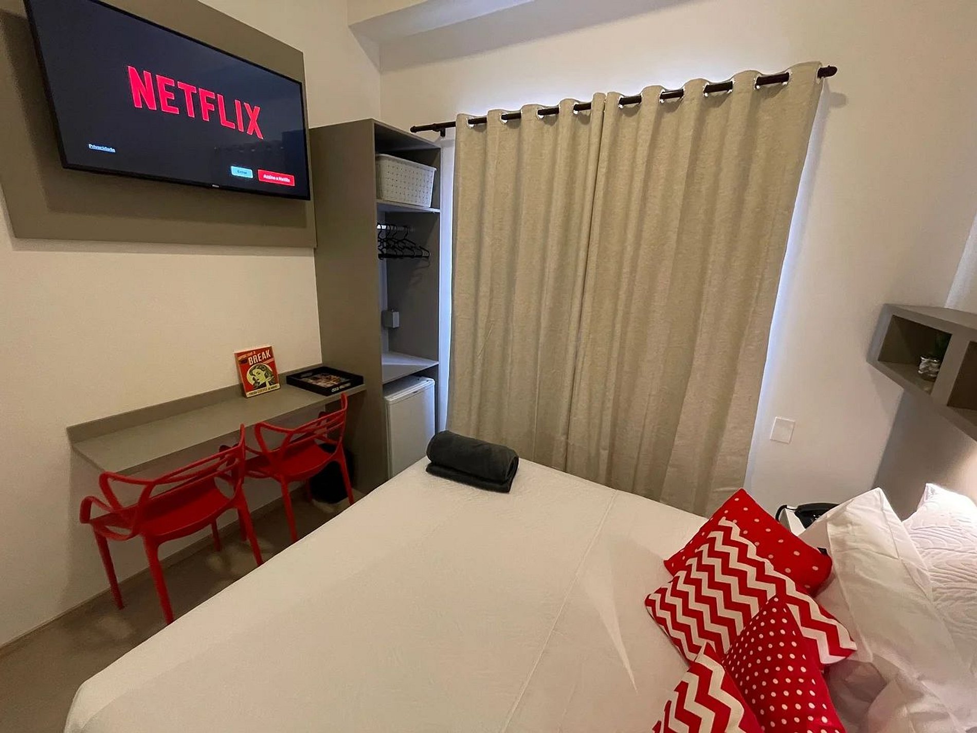 Todos os ambientes contam com ventilador de teto, internet de alta velocidade e TVs Smart, para que você possa acessar suas contas de streaming com total comodidade.